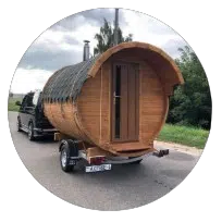 мобильная парная в виде уютной деревянной бочки, изготовленная из экологичной древесины с герметичной дверью и удобными полками быстро прогревается дровяной печью и долго сохраняет тепло. Вместимость до 6 человек позволяет комфортно попариться в компании друзей или семьи, а компактные размеры и колесная база делают доставку быстрой и удобной – мы привезем баню к Вашему дому, на дачу или даже в живописное место на природе.